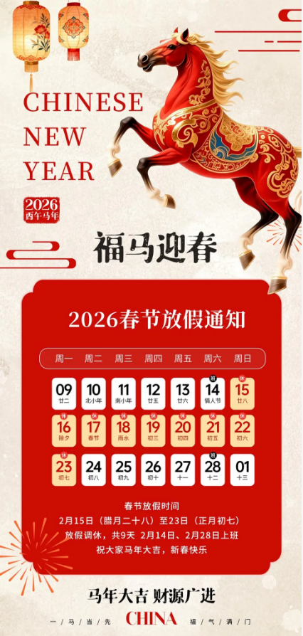 结合我司实际运营情况,现将 2026 年春节放假安排及相关事宜通知如下,敬请知悉并提前做好工作规划。